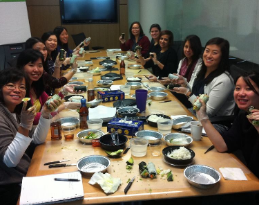"Sushi Bears was an obvious choice to add some fun to our cultural diversity meeting. They catered the buffet and also taught a group of 50 of us how to roll sushi!" -Human Resources Ernst & Young Ernst & Young on 4th and Walnut Cincinnati had some clients in from Asia, so the Cultural Diversity Event was not all business, but also fun with a 50 person sushi rolling party where everyone made their own lunch! We also catered a full buffet for those who wanted to try some extra options! |